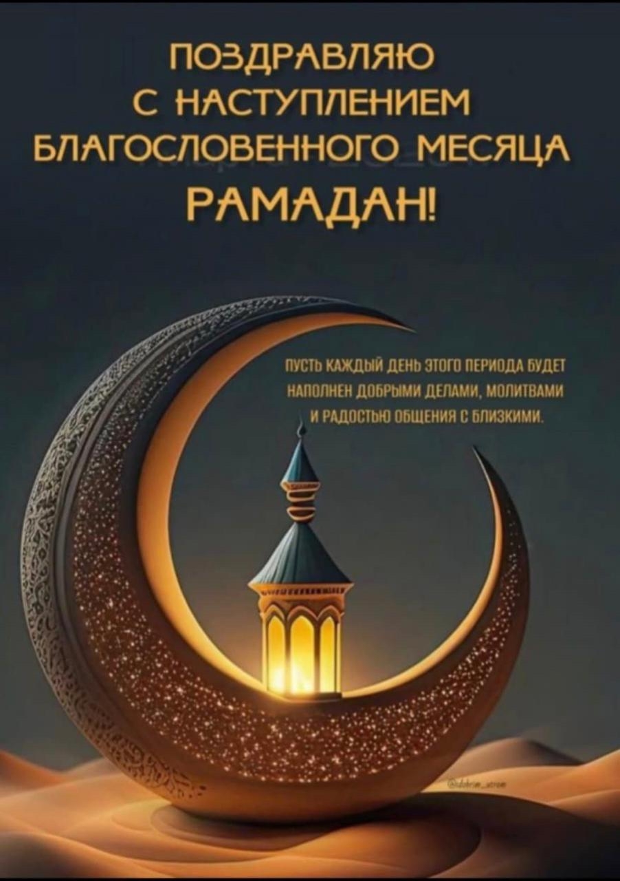 Поздравляем со священным месяцем Рамадан! Пусть он принесет обновление жизни, очищение души и тела, радость и счастье. Пусть Аллах поможет в сложных ситуациях, подарит семье здоровье, тепло, благополучие и успех!